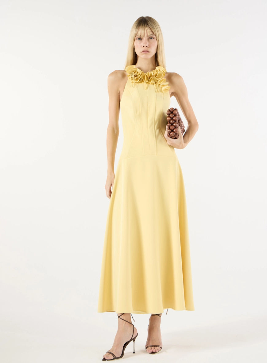 Vestido midi aplicação babados amarelo Skazi